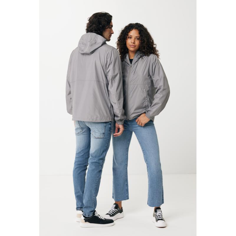 Unisex relaxed fit lightweight jacket made from 100% post-consumer recycled polyester in 70 G/M². The jacket has an adjustable hood with elastic string, a reversed zipper at the front and seam welt pockets. All zippers have extra zip pullers in matching colour for a refined look. The cuffs are fully elasticated. The back of the jacket is slightly longer and curved and the bottom hem has an elastic string and stoppers for better protection. Fluorine/PFAS free water repellent impregnation. The use of genuine recycled fabric materials and environmental impact claims are guaranteed, by using the AWARE™ disruptive physical tracer and blockchain technology. By scanning the QR code, you will gain access to a dedicated digital passport. 2% of proceeds of each sold product will be donated to Water.org. This product is OEKO-TEX® STANDARD 100 certified.