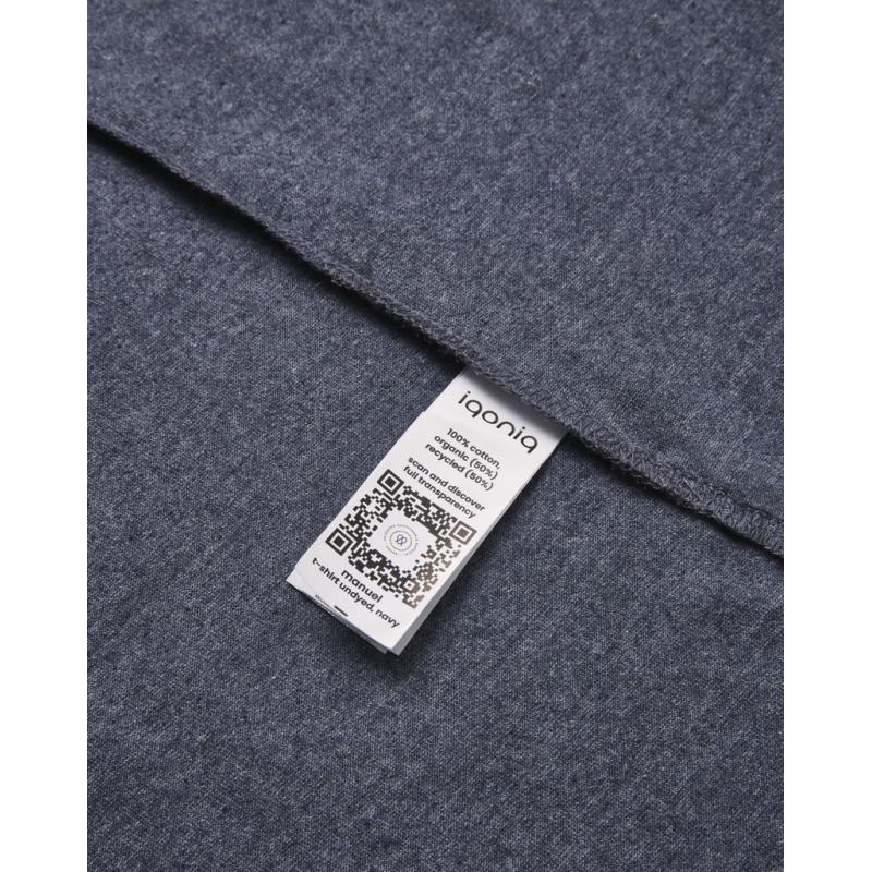 Unisex classic fit t-shirt made from 100% cotton, of which 50% is recycled and 50% organic, in 180 G/M². It is the same t-shirt as our IQONIQ ‘Bryce’ t-shirt. There is only one difference: we eliminate the dyeing process. We have blended recycled cotton in its existing colour with virgin organic cotton, which creates the beautiful heather mélange effect. The use of genuine recycled & organic fabric materials and environmental impact claims are guaranteed, by using the AWARE™ disruptive physical tracer and blockchain technology. By scanning the QR code, you will gain access to a dedicated digital passport of the product. 2% of proceeds of each sold product will be donated to Water.org. This product is OEKO-TEX® STANDARD 100 Centexbel certified. Due to the nature of recycled yarns, impurities and colour variations may appear.