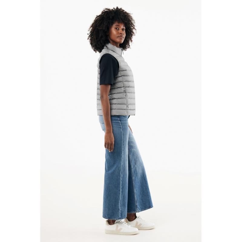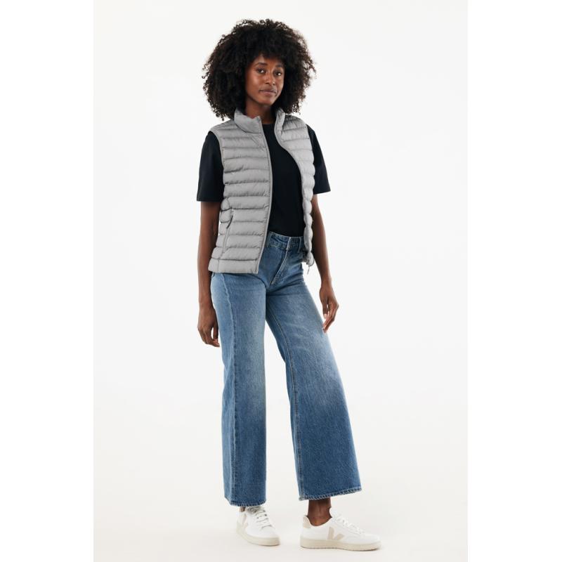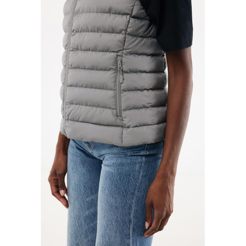 Women’s medium fit bodywarmer made from 100% post-consumer recycled polyester. The bodywarmer is fully quilted with 100% recycled polyester pearl filling. It has a reversed zipper at the front and practical zip pockets in the side panel seams. All zippers have extra zip pullers in matching colour for a refined look. The armholes have elastic binding and all seams at the inside are clean finished with recycled binding. Fluorine/PFAS free water repellent impregnation. The use of genuine recycled fabric materials and environmental impact claims are guaranteed, by using the AWARE™ disruptive physical tracer and blockchain technology. By scanning the QR code, you will gain access to a dedicated digital passport. 2% of proceeds of each sold product will be donated to Water.org. This product is OEKO-TEX® STANDARD 100 certified. The Meru bodywarmer is also available in men fit.