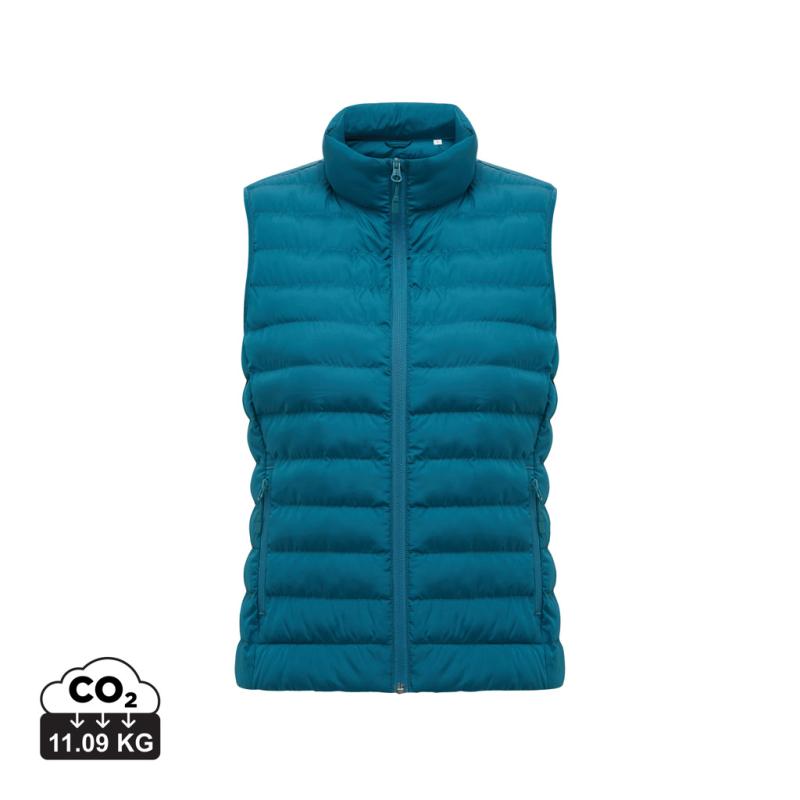 Women’s medium fit bodywarmer made from 100% post-consumer recycled polyester. The bodywarmer is fully quilted with 100% recycled polyester pearl filling. It has a reversed zipper at the front and practical zip pockets in the side panel seams. All zippers have extra zip pullers in matching colour for a refined look. The armholes have elastic binding and all seams at the inside are clean finished with recycled binding. Fluorine/PFAS free water repellent impregnation. The use of genuine recycled fabric materials and environmental impact claims are guaranteed, by using the AWARE™ disruptive physical tracer and blockchain technology. By scanning the QR code, you will gain access to a dedicated digital passport. 2% of proceeds of each sold product will be donated to Water.org. This product is OEKO-TEX® STANDARD 100 certified. The Meru bodywarmer is also available in men fit.