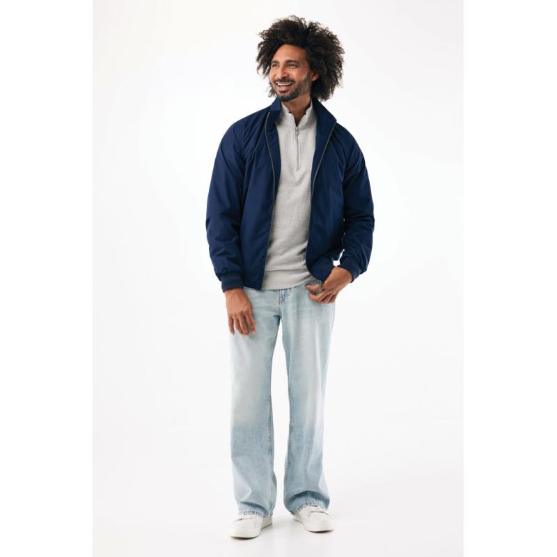Unisex urban jacket made from 100% recycled polyester, with RTPU membrane (GRS certified). This jacket was designed for casual chic wear. CF zip is made from nickel-free metal with a premium metal puller and cord filling along the zip length, two welt pockets at sides with hidden snap closure, collar in self-fabric, sleeve and bottom hem with elastic rib for soft touch. Jacket is lined and has hidden zip at bottom hem and left wearer’s chest for easy decoration. Full garment is stitched with recycled polyester sewing thread. At back neck there is a tear-off size label with 1 piece iqoniq craft hangtag, care label at the left inside side seam. The use of genuine recycled fabric material and environmental impact claims are guaranteed, by using the AWARE™ disruptive physical tracer and blockchain technology. By scanning the QR code, you will gain access to a dedicated digital passport.