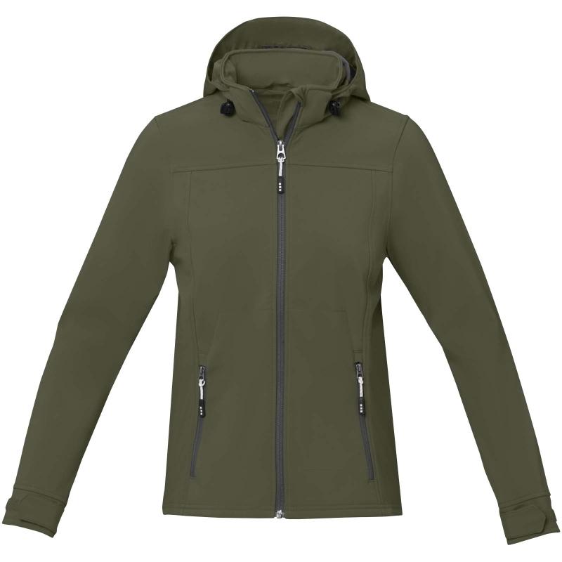 The Langley women's 2-layer softshell jacket – for ultimate outdoor performance. The jacket has a waterproof rating of 5000 mm, keeping you dry and shielded from the elements. Its exceptional breathability, with a rating of 3000 g/m², wicks away moisture, keeping you comfortable during intense activities. Enjoy unrestricted movement with the four-way stretch fabric, combining polyester and elastane (300 g/m²) designed to flex and adapt to your body's every motion. The bonded inner layer features a micro fleece made of polyester, complemented by TPU lamination, which enhances the jacket's insulation and warmth and protection to any type of weather. The detachable hood adapts to various weather conditions, while the adjustable cuffs with hook and loop closure guarantee a tight and comfortable fit. The elastic drawstring with an adjustable cord lock allows to tailor the jacket to any preference. With the inclusion of secure hand pockets with zippers, you can keep your essentials close at hand during any adventure. Be ready to take on any adventure in style, comfort, and confidence with the Langley softshell jacket. This jacket is designed with a fitted shape for a feminine look.