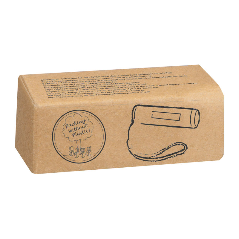 Lanternă reîncărcabilă, cu acumulator de 400 mAh, fabricat din aluminiu, cu trei modalităţi de iluminare: lumină LED în faţă continuă și intermitentă, precum și lumină COB pe lateral. Această lanternă puternică este un accesoriu util, prevăzut cu şnur practic.