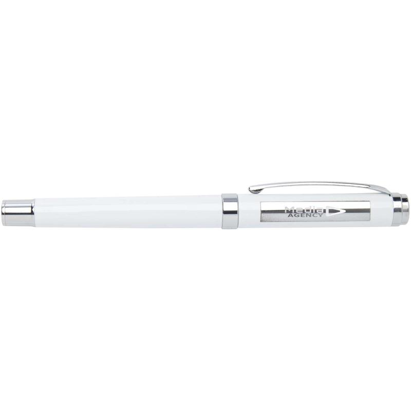 The Legato set is an elegant combination of an A5 notebook and a rollerball pen. The pen has a RCS certified recycled brass upper barrel with silver chromed finish, lower barrel with a colour spray coating finish, metal silver chromed accessories, and a LUXE logo on the mid ring. Ink colour: Blue. Writing length: 400 metres. Nib size: 0.7 mm. Extra refill in black colour included. The notebook has 80 sheets of 80 g/m² lined cream-coloured paper, and has a recycled leather-like plastic cover, an elastic closure, ribbon marker, and accordion pocket. Silver chromed metal accessory on the elastic closure. Delivered in a cardboard gift box.