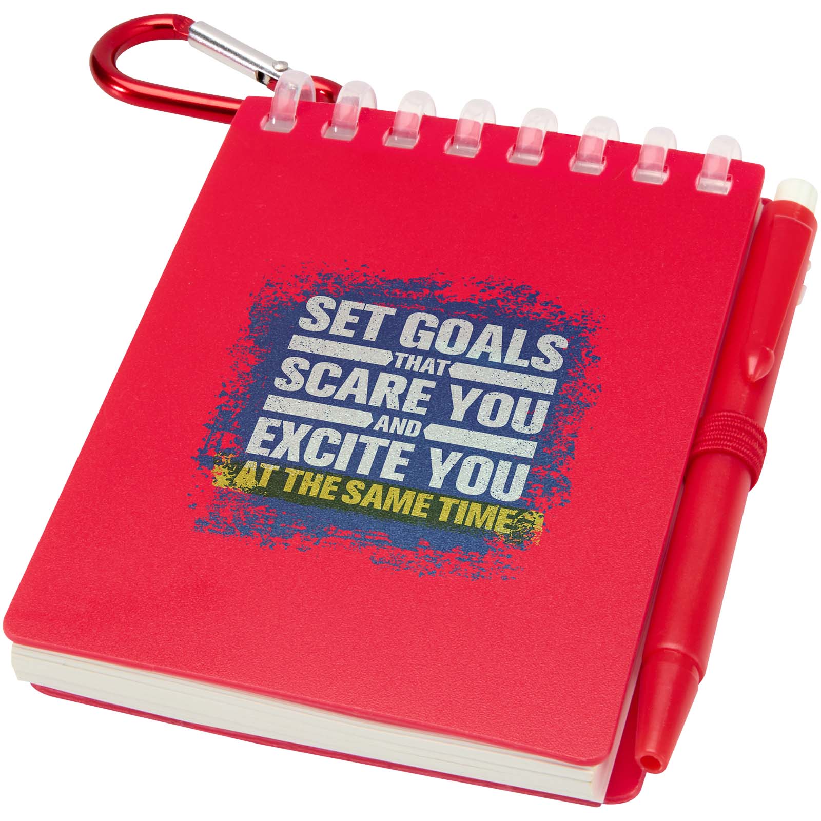 The Lig Mini notebook and pen set is a compact and practical companion for on-the-go note-taking. The spiral-bound notebook has a soft recycled plastic cover and 70 blank sheets of 120 g/m² water-resistant stone paper, making it ideal for outdoor use. With rounded corners and a built-in pen loop, it embraces the mini-size trend while remaining functional. The matching ballpoint pen is made from recycled ABS plastic, writes in black ink, and offers a writing length of 250 metres. A colour-coordinated metal ring allows the set to be easily attached to a backpack, purse, or keychain, making it perfect for durable and portable note-taking. Notebook size: 11 × 7.5 cm.