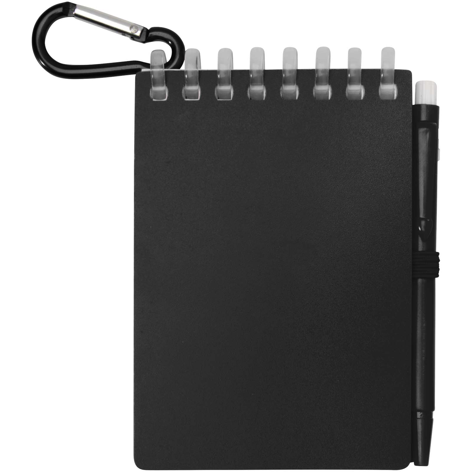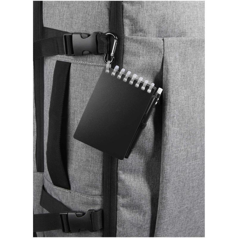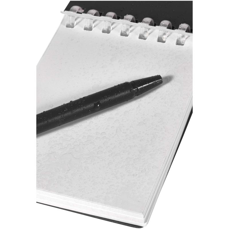 The Lig Mini notebook and pen set is a compact and practical companion for on-the-go note-taking. The spiral-bound notebook has a soft recycled plastic cover and 70 blank sheets of 120 g/m² water-resistant stone paper, making it ideal for outdoor use. With rounded corners and a built-in pen loop, it embraces the mini-size trend while remaining functional. The matching ballpoint pen is made from recycled ABS plastic, writes in black ink, and offers a writing length of 250 metres. A colour-coordinated metal ring allows the set to be easily attached to a backpack, purse, or keychain, making it perfect for durable and portable note-taking. Notebook size: 11 × 7.5 cm.