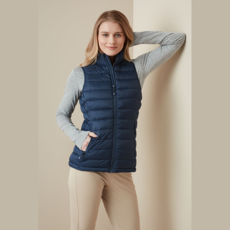 This padded vest for women offers great heat insulation despite its light weight. With handy 'stow-away' function, The vest folds down into its own inside pocket, saving space on outdoor adventures.