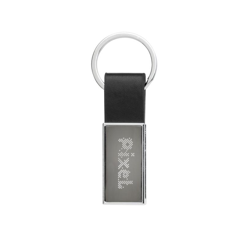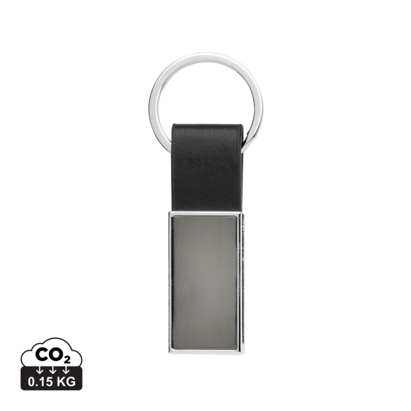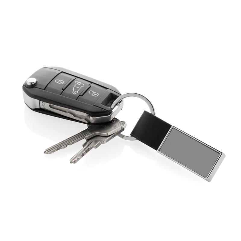 Luxury keychain made with RCS recycled zinc alloy and PU. Total recycled content: 67% based on total item weight. RCS certification ensures a completely certified supply chain of the recycled materials. Packed in paper bag.