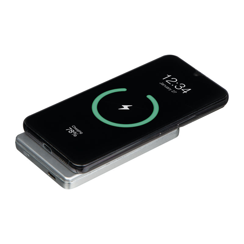 Power bank Magsafe® cu capacitate de 5000 mAh din aluminiu reciclat pentru încărcare wireless de până la 10 waţi. Datorită magnetului încorporat, încărcătorul asigură o încărcare wireless rapidă pentru smartphone-urile Iphone®. Compatibil cu Iphone® 12 și modelele mai noi, dar poate fi utilizat și ca încărcător wireless pentru alte modele compatibile QI.