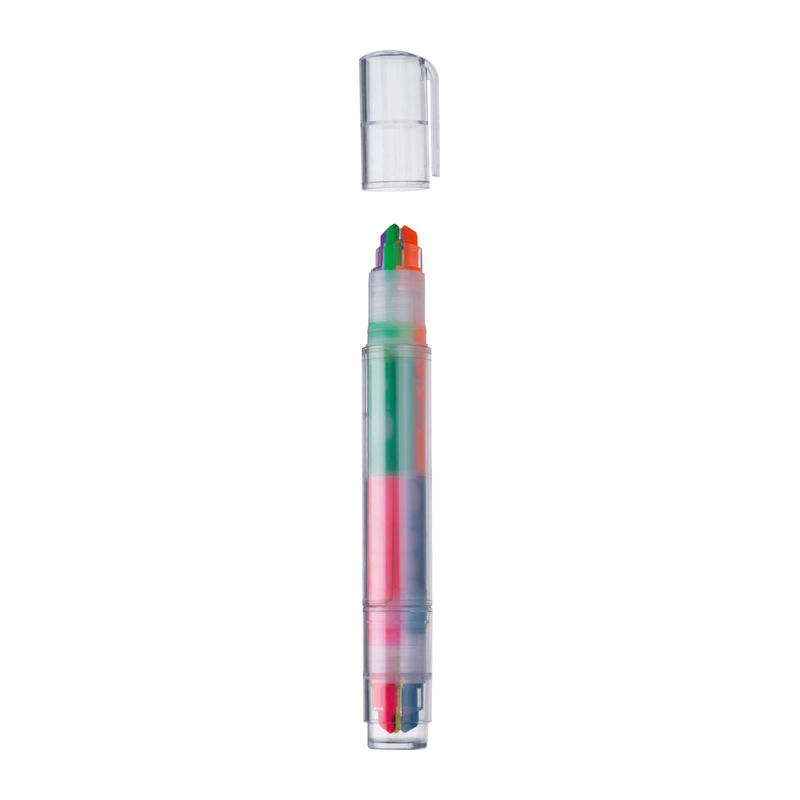 Set de markere din plastic cu 6 culori diferite. Trei culori pe fiecare parte.