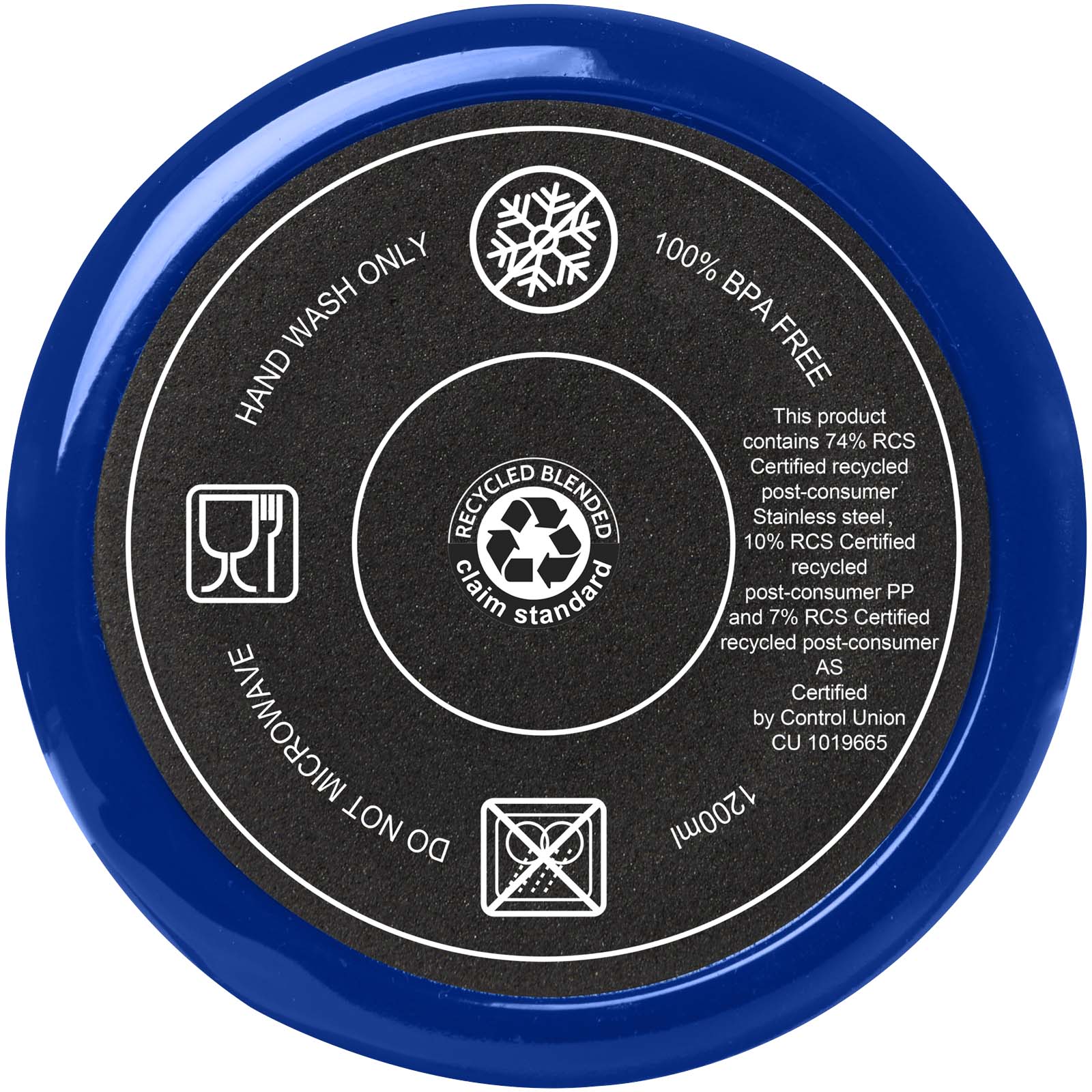 The Melbourne tumbler features double-wall air insulation, keeping drinks hot for up to 2 hours and cold for up to 4 hours. The inner wall of the tumbler is made from recycled plastic and the outer wall is made from RCS-certified recycled stainless steel. The tumbler holds 1200 ml so you can stay hydrated in style all day long. Features a splash-proof dual-vent lid with a twist-lock cap. Comes with a food-grade recycled straw. Hand wash only.