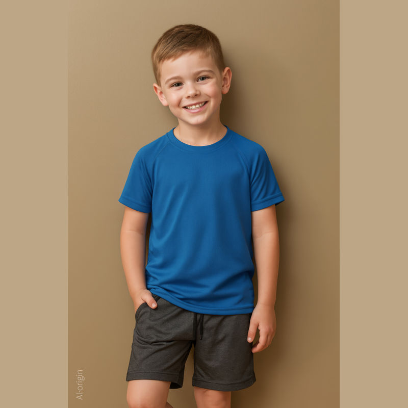 Modern and stretchy sports T-shirt for children, with raglan sleeves made of quick-drying, breathable mesh-material. Contrast neck tape, decorative flatlock seams and excellent freedom of movement.