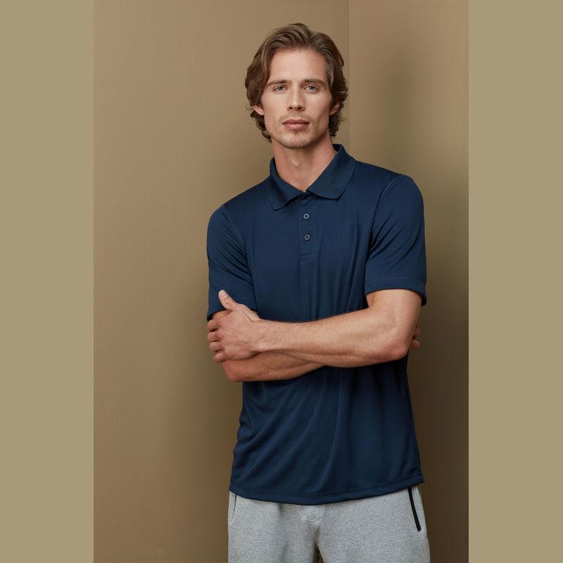 Modern and stretchy sports polo shirt for men made of quick-drying, breathable mesh-material. Contrast neck tape, decorative flatlock seams, rib collar and excellent freedom of movement.
