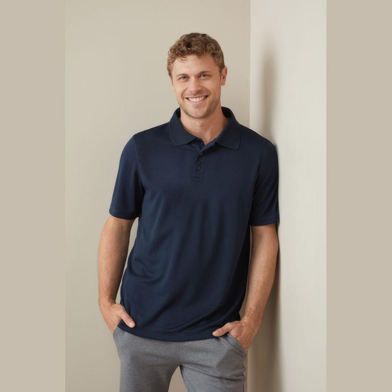 Modern and stretchy sports polo shirt for men made of quick-drying, breathable mesh-material. Contrast neck tape, decorative flatlock seams, rib collar and excellent freedom of movement.