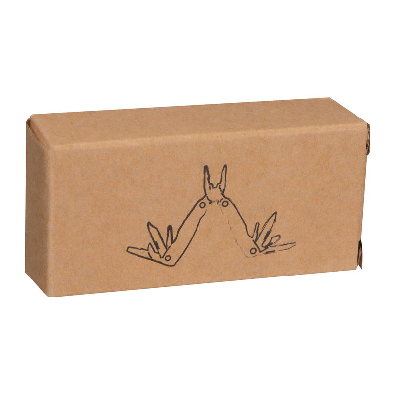 Unealtă multifuncţională din oţel inoxidabil cu mâner de bambus și diverse unelte integrate, precum clește, cuţit, ferăstrău, șurubelniţă, pilă etc.