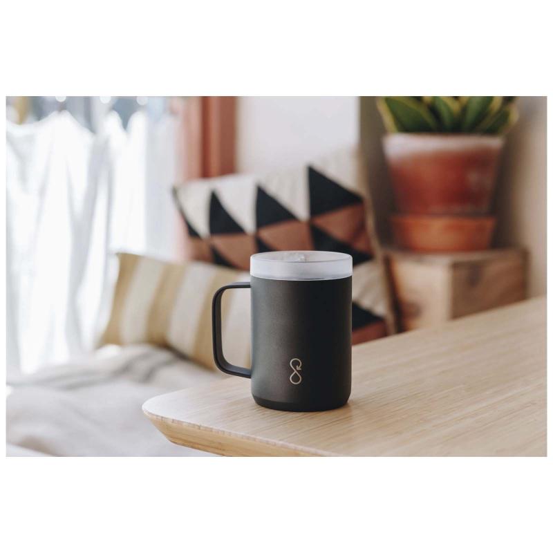 The Ocean Bottle 350 ml travel mug has double wall insulation to keep drinks hot for up to four hours and cold for up to ten hours. The ergonomic handle allows you to attach it to bags or other items to optimise storage space and carrying capacity. Each travel mug is entirely carbon neutral and collects 1,000 plastic bottles to improve livelihoods in coastal communities. The mug is made from 90% recycled stainless steel and other recycled materials. Presented in a responsibly sourced recycled cardboard gift box.