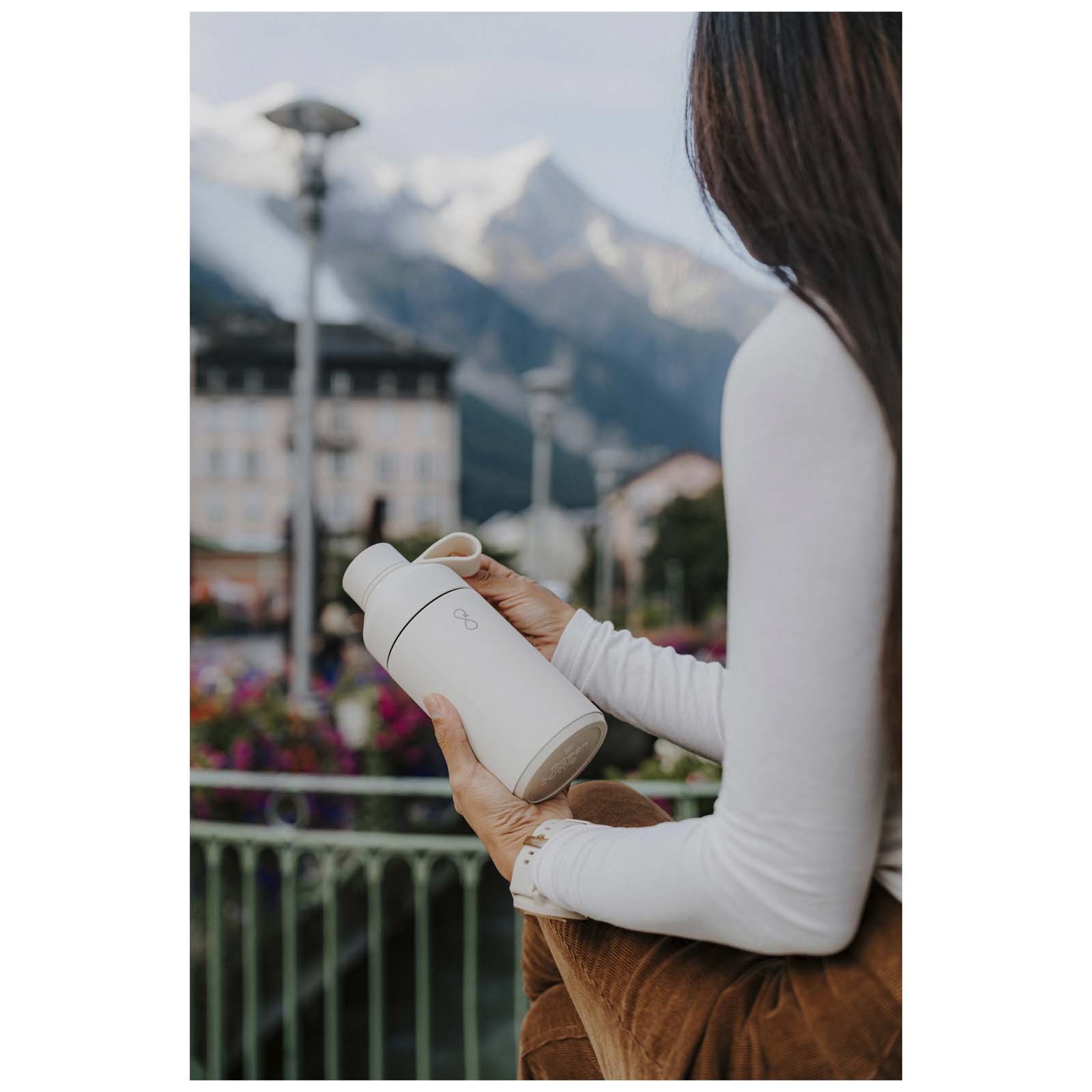 The 750 ml Ocean Bottle has double wall vacuum insulation to keep drinks hot for up to 6 hours and cold for up to 18 hours. Each Ocean Bottle collects 1,000 plastic bottles to improve livelihoods in coastal communities. The bottle contains recycled stainless steel and recycled ocean-bound plastic and is NFC Smart Chip enabled to collect more plastic with every refill. The dual opening makes it easy to clean and fill the bottle, and the anti-leak lid has an easy carry loop. The bottle is dishwasher safe and BPA-free. Presented in a responsibly sourced recycled cardboard gift box.