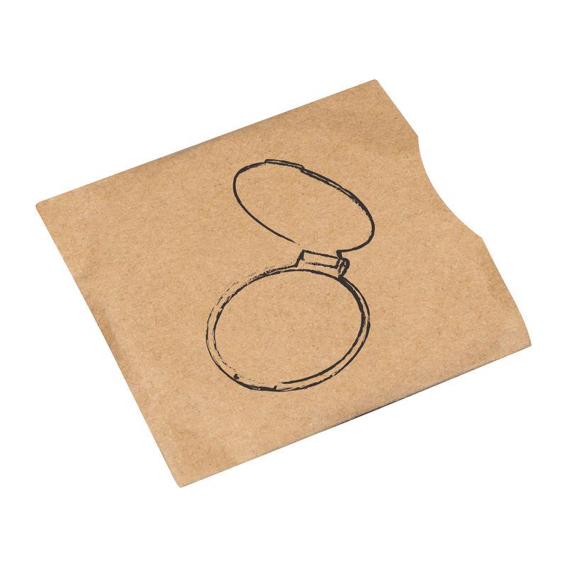 Oglindă cosmetică de buzunar realizată din plastic sablat.