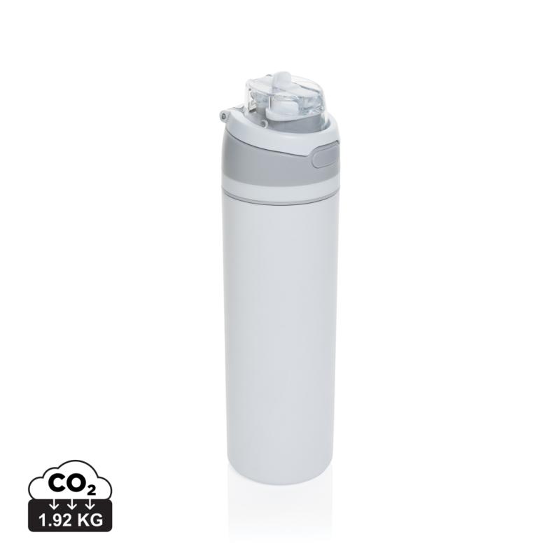 Introducing the Omni Sip Water Bottle. You deserve versatility in your hydration routine, and that's why we created the Omni Sip. This innovative bottle lets you choose how you drink. Sip through the built-in straw while holding it upright, or tilt it back to enjoy a sip from the wide-mouth opening. Ready for action at a moment's notice, just push the button to flip the top open, and push it back down to securely lock it shut, keeping out dirt and germs. 720ml content and made from RCS certified recycled steel. The Omni Sip is entirely leak-proof. Packed in FSC giftbox. Total recycled content: 67% based on total item weight.