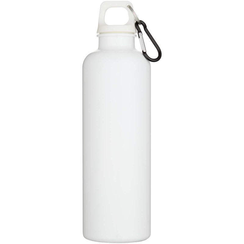 Staying hydrated at all times is possible with this durable yet lightweight 750 ml water bottle made from RCS certified RPET. It is the perfect companion while exercising, on day trips or at the office. The single walled Oregon bottle has a twist-on lid and offers plenty of space to add any kind of logo. Clip the attached carabiner (not suitable for climbing) securely to a bag to avoid losing it. In compliance with the EFSA approved PET recycling process.