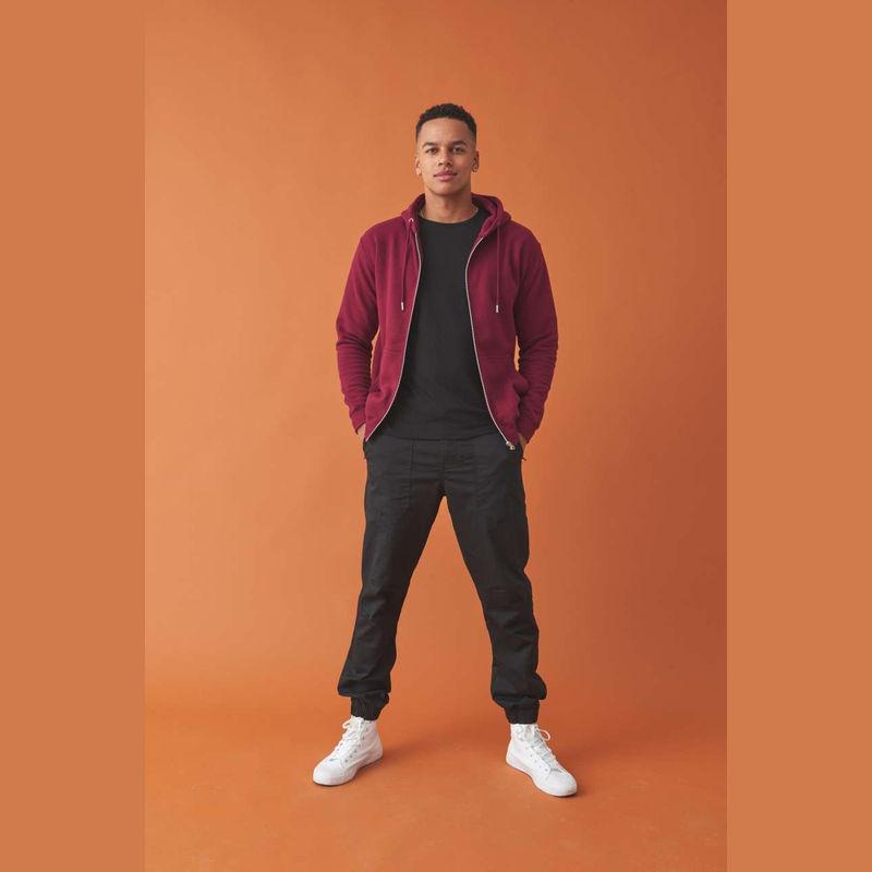 80% Organic Cotton/20% Recycled Polyester sweatshirt. Full zip hoodie with metal YKK zip, double fabric hood, kangaroo pockets, tear away label. 280 g/m²