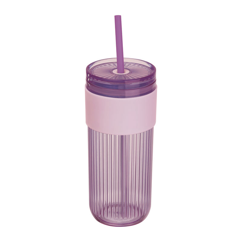 Pahar din plastic pentru băut, cu pai, zonă de prindere întărită, capacitate 660 ml.