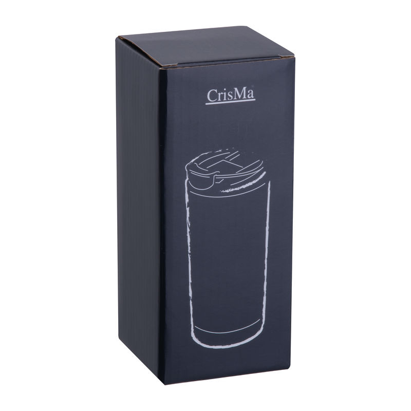 Cană termoizolantă CrisMa din oțel inoxidabil, cu perete dublu, vacuum, cu orificiu de băut care se poate închide și capacitate de 480 ml.