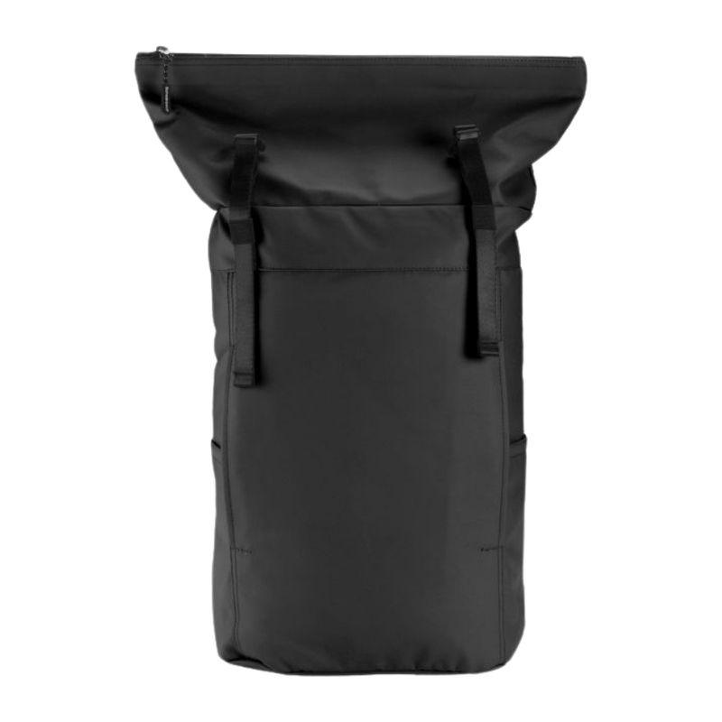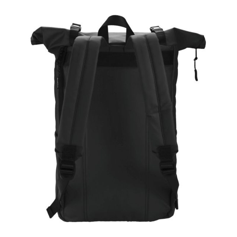 Practical rolltop Schwarzwolf backpack is suitable for tourism as well as every day use. The backpack has two small front zipper pockets, two side pockets and a back zipper entry to the main compartment which includes one big separated pocket and small pockets for accessories. After rolling it fastens with two plastic buckles. The backpack has a padded back and shoulder straps.