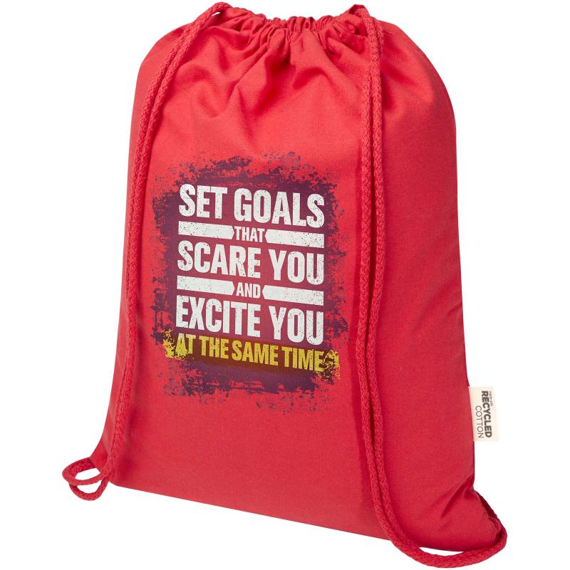 The Peru Blend drawstring bag is made from 60% GRS certified recycled cotton and 40% GRS certified RPET, making it a strong yet lightweight option for everyday use. Easy to carry on the back or shoulder, it features a large main compartment with a cotton drawstring closure that allows quick opening and closing. With 180 g/m² fabric, the bag is durable and offers plenty of space for adding a logo or message, making it ideal as a giveaway to promote your brand or campaign. The print methods available for this bag are also GRS certified, ensuring a transparent and fully certified supply chain. The bag can hold up to 5 kilos weight.