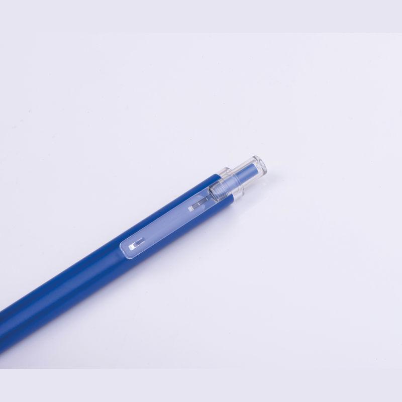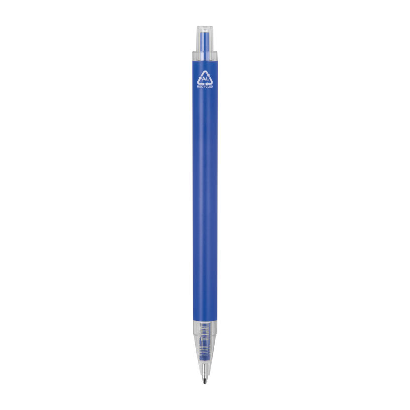 Pix din aluminiu reciclat și plastic reciclat (RPET) cu clemă transparentă și mină cu cerneală albastră.
