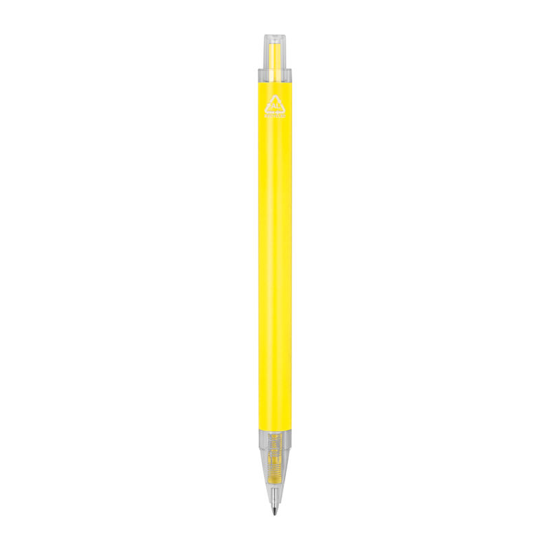 Pix din aluminiu reciclat și plastic reciclat (RPET) cu clemă transparentă și mină cu cerneală albastră.
