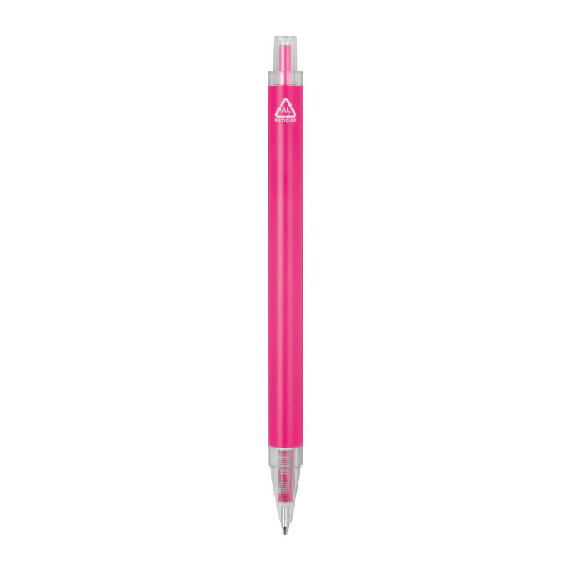 Pix din aluminiu reciclat și plastic reciclat (RPET) cu clemă transparentă și mină cu cerneală albastră.