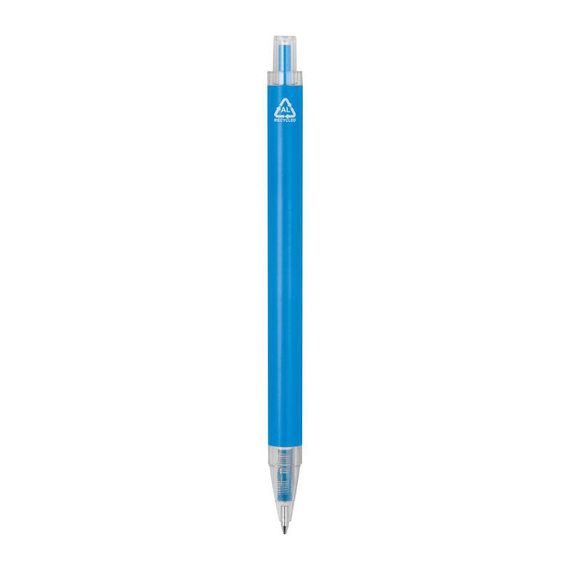 Pix din aluminiu reciclat și plastic reciclat (RPET) cu clemă transparentă și mină cu cerneală albastră.