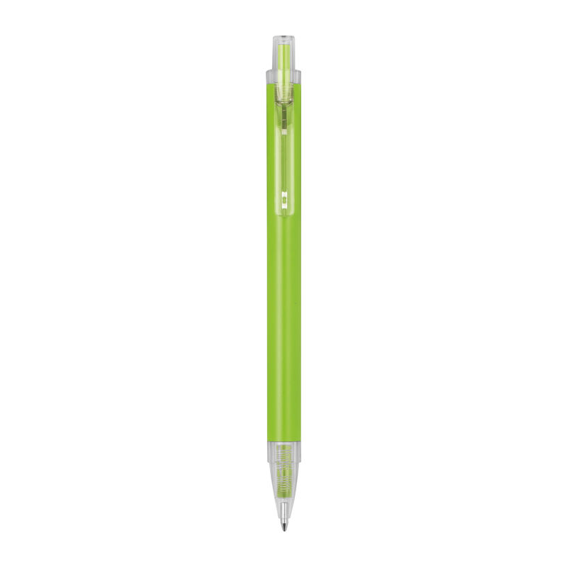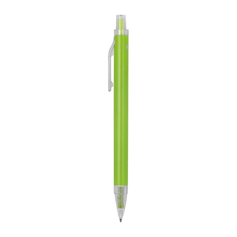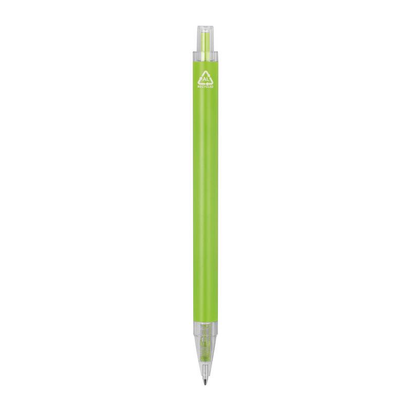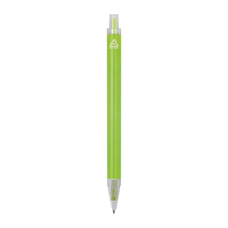 Pix din aluminiu reciclat și plastic reciclat (RPET) cu clemă transparentă și mină cu cerneală albastră.