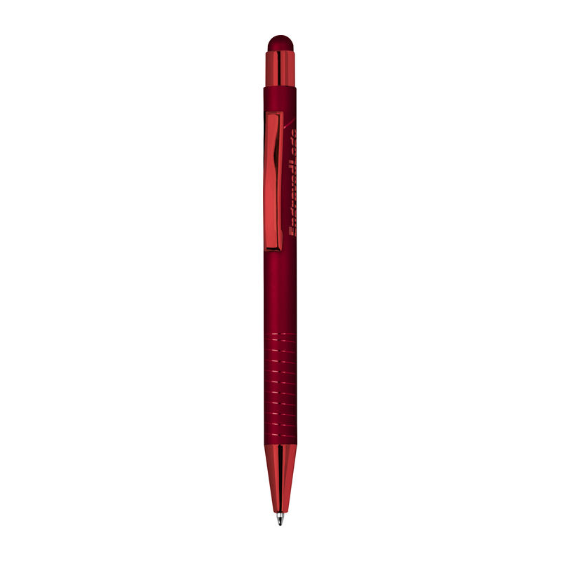 Ballpen tactil integrat pentru smartphone-uri și tablete. Are finisaj lucios, cu efect oglindă colorată, cerneală albastră.