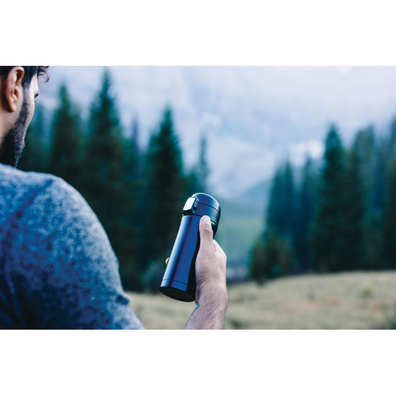 This great double wall stainless steel vacuum mug keeps your drink warm for up to 5 hours or cool for up to 15 hours. The lid is lockable and therefore avoids any risk of leaking or spilling. The lid is easy to keep clean for optimal hygiene and is dishwasher safe. The unique design of the mug allows you to drink conveniently and safely with one hand directly from the mug. The size of the mug is suitable to place in any car drink holder. Made with RCS (Recycled Claim Standard) certified recycled materials. RCS certification ensures a completely certified supply chain of the recycled materials. Total recycled content: 71% based on total item weight. BPA free. Capacity 300ml. Including FSC®-certified kraft packaging.