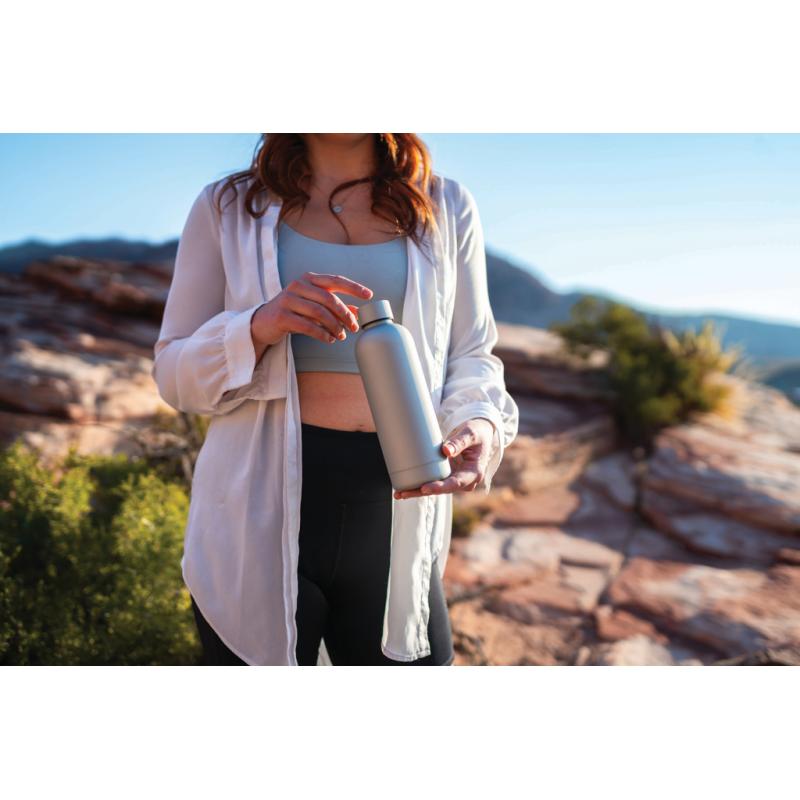 Perfect for all-day hydration, the Impact RCS stainless steel double wall vacuum bottle keeps you refreshed throughout the day. Made of durable recycled stainless steel. Featuring a minimalistic but stylish design, you will make an impact anywhere! Keeps your drink 5 hours warm or 15 hours cold. Made with RCS (Recycled Claim Standard) certified recycled materials. RCS certification ensures a completely certified supply chain of the recycled materials. Total recycled content: 80% based on total item weight. BPA free. Capacity 500ml. Including FSC® certified kraft packaging. 2% of proceeds of each sold product will be donated to Water.org.
