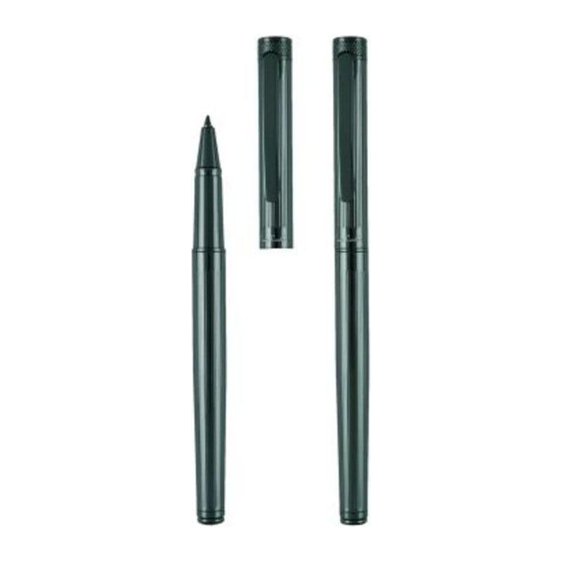 Set rollerpen şi pix Pierre Cardin decorat cu gravură individuală. Pixul este cu mecanism de rotire, rollerpenul cu capac. Conţin pastă albastră de calitate (0,5 mm). Cutia cadou conţine rezervă neagră. Livrat în cutie de cadou Pierre Cardin, cu cer…