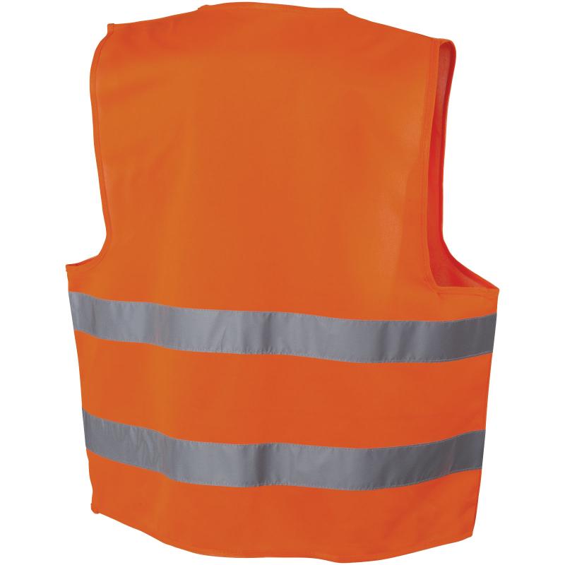 High visibility warning vest Class 2, suitable for persons between 165-180 cm. Large decoration area on the front and on the back of the vest. Visibility clothing for professional use. Fluorescent background and reflective tape. Specification EN ISO 20471:2013+A1:2016. These garments bear CE marking to demonstrate compliance with EU Regulation 2016/425/EU Personal Protective Equipment Category II.
