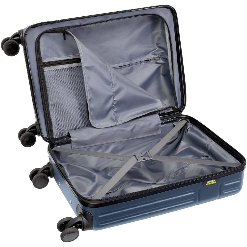 Constructed with impact-resistant recycled plastic and RPET lining, the 20” Rover cabin trolley stands for quality. It features a double-tube aluminium frame, 360 degree 4-wheel spinner, an integrated TSA combination lock, an easy grab handle for comfort, and interior divider organiser compartments. Can be brought as hand luggage on most mainstream airlines. This trolley is GRS certified, including the printing, making it a more responsible choice.