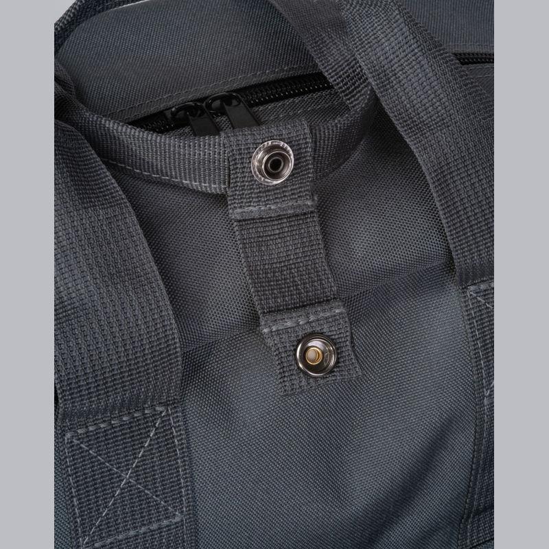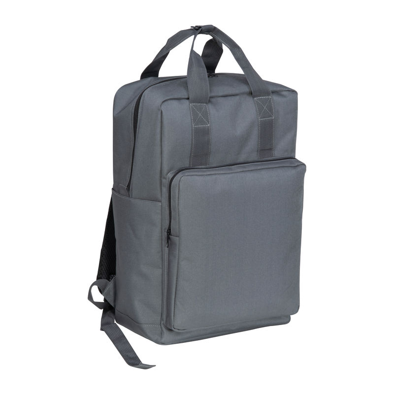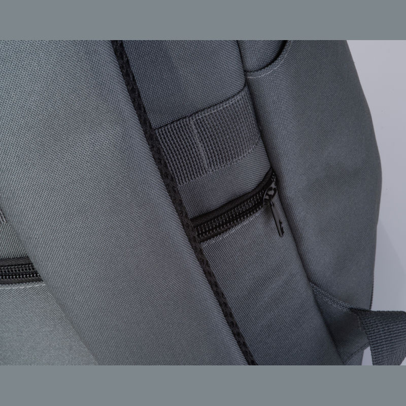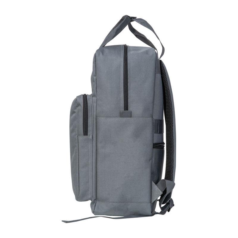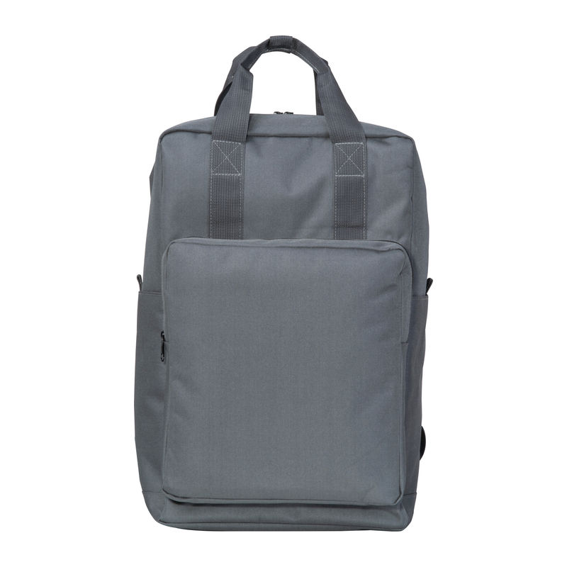 Geantă din RPET cu buzunare laterale, bretele căptușite, buzunar frontal, compartiment laptop, funcie troller și antifurt, precum și capse cu închidere securizată.