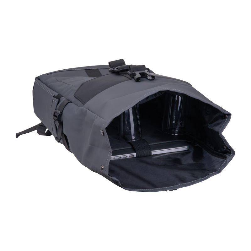 Geantă curier Ferraghini din poliester 600D, cu compartiment pentru laptop, bretele căptușite, buzunar frontal mare și capacitate de 18 litri.