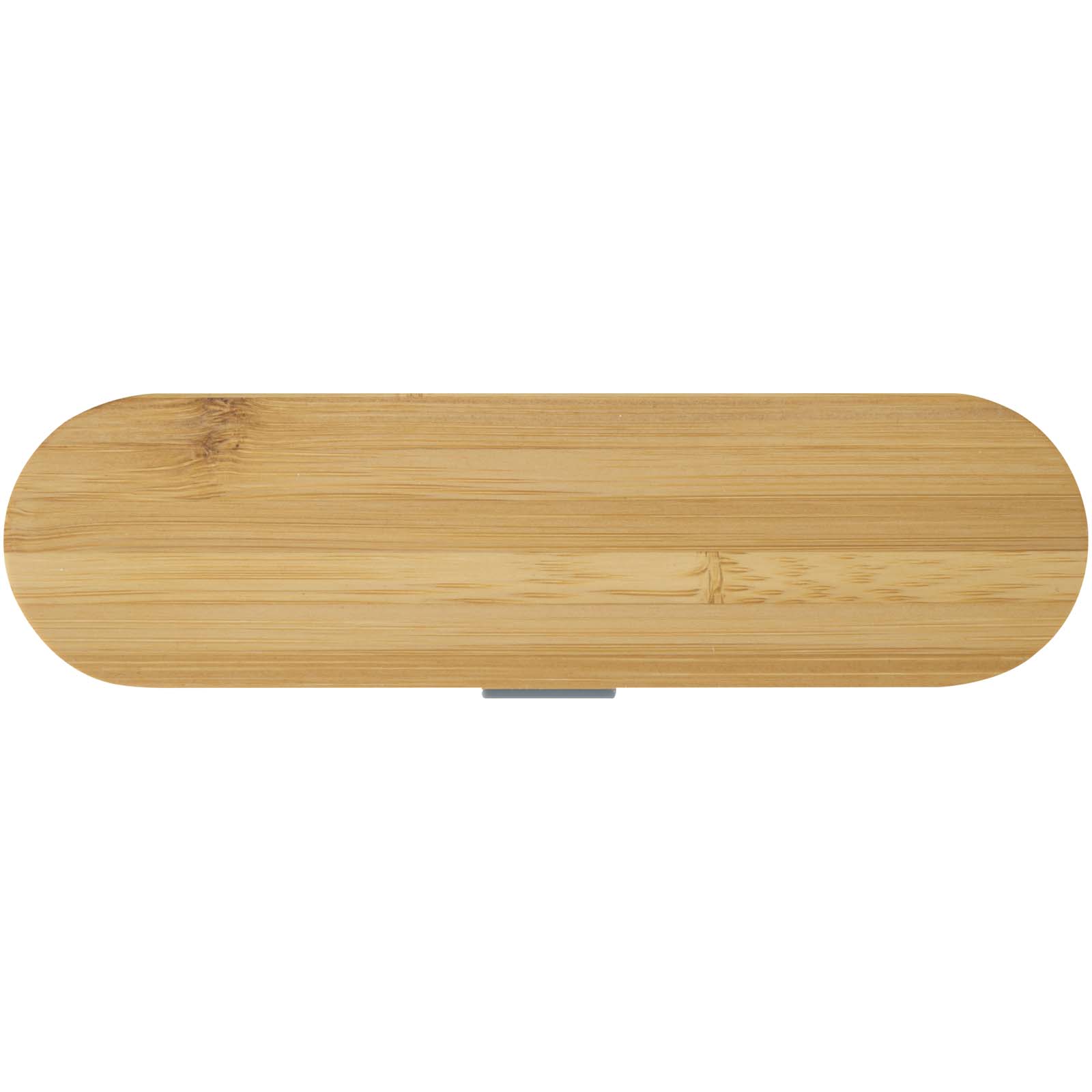 A reusable cutlery set including a fork, knife, spoon, straw, and straw cleaner – ideal for meals on the go. Compact and easy to clean, it’s perfect for lunch boxes, travel, or office use. Delivered in a plastic storage box with a bamboo lid.