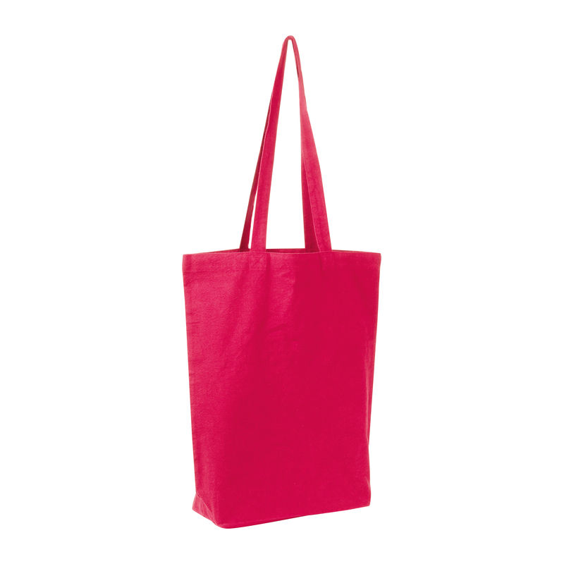 Geantă din bumbac Fairtrade (180 g/m²) cu pliu lateral și mâner lung (70 cm).