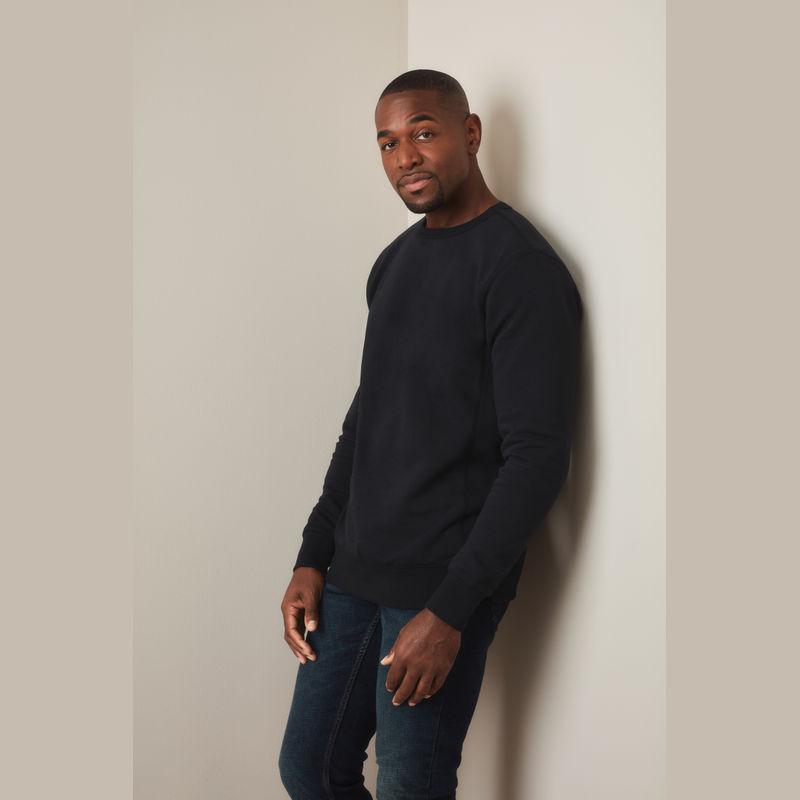 Fashionable sweatshirt for men made of warm and soft cotton-polyester-blend with a modern and sporty design, collar with rib binding and wide rib cuffs. Brushed inside for extra comfort and warmth.