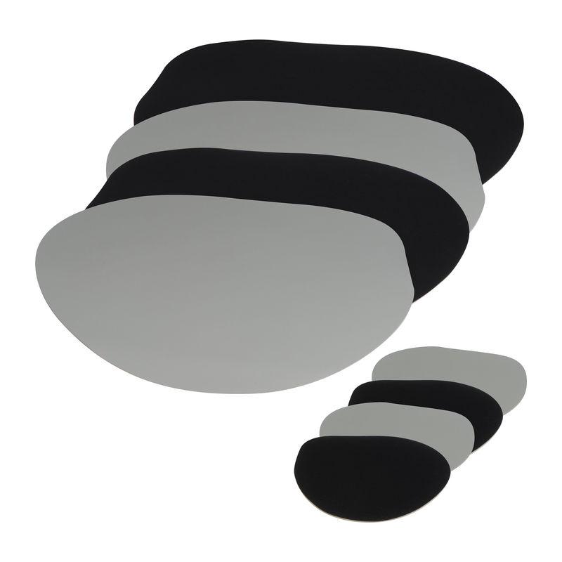 Set de servire din 8 piese, cu 4 piese mai mari și 4 piese mai mici din PVC pentru tacâmuri, băuturi și accesorii.