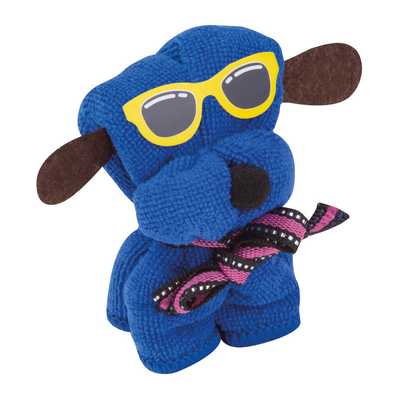 Lavetă moale din microfibră (20 x 20 cm), pliată și ambalată în formă de căţel.