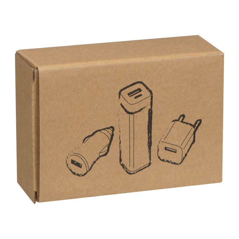 Set de călătorie, ce conţine încărcător USB pentru masină, conector, Power bANK (2200 mAh) şi cablu USB împachetat în husă portabilă.
