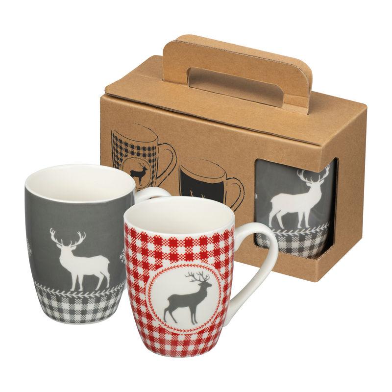 Set compus din două căni ceramice de 300ml, cu motive de crăciun, ambalajul este elegant și ecologic.
