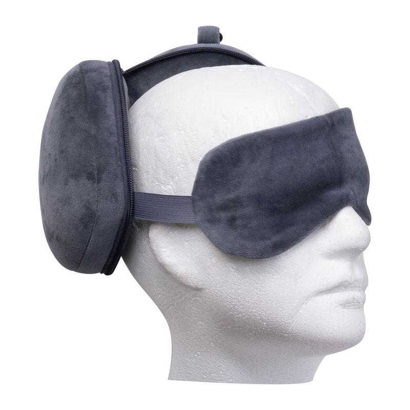 Set de călătorie format dintr-o mască pentru ochi și o pernă. Fabricat din material microfibră. Ideal pentru zboruri, călătorii cu trenul sau cu mașina.